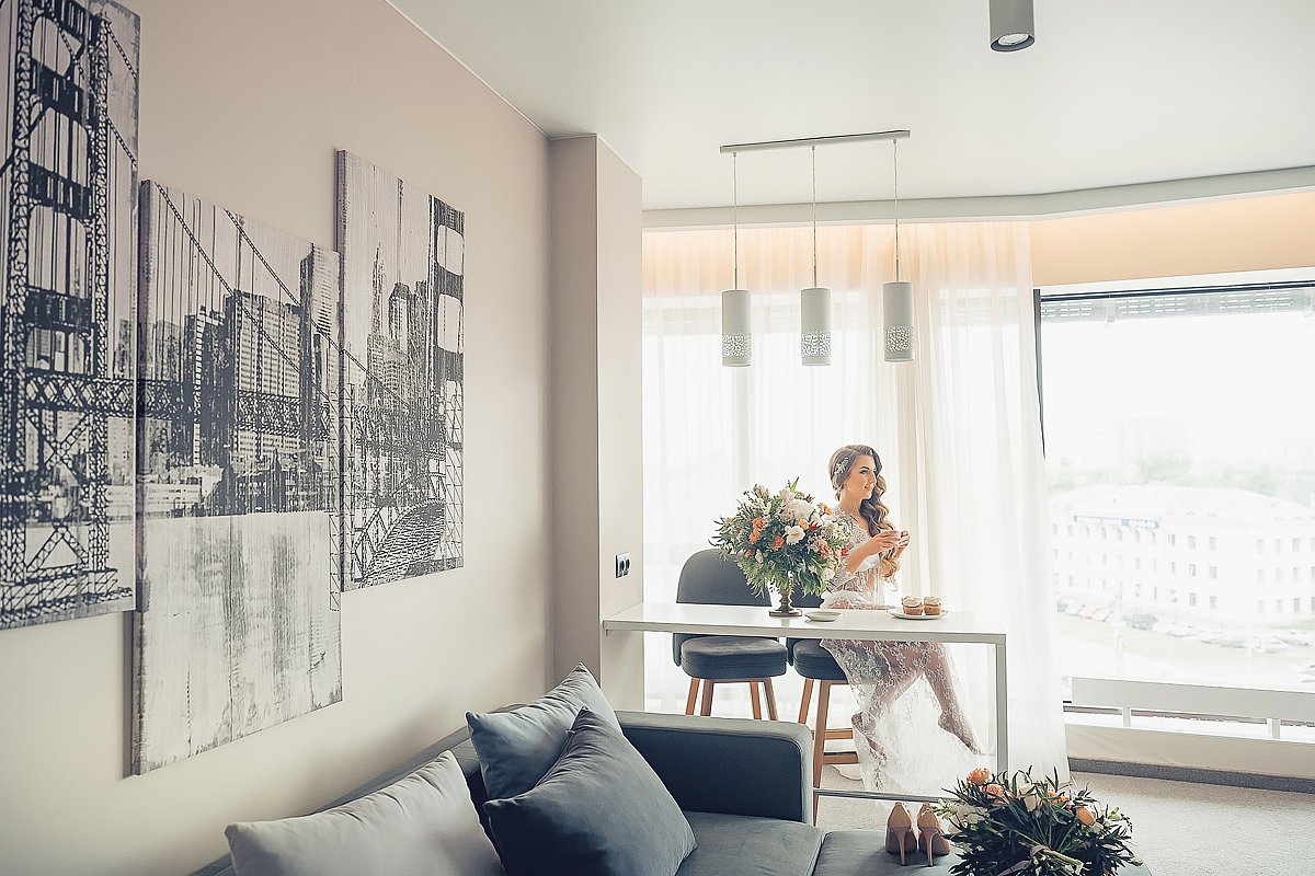 AMAKS Congress Hotel酒店客房的时尚内饰非常适合新娘或新郎的早晨,以及单身汉或母鸡派对,或第一个早晨在一起。